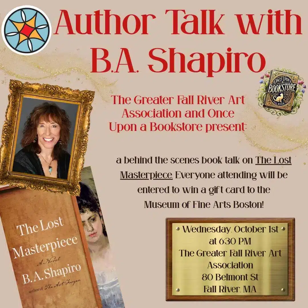 Join Once Upon a Bookstore at the Greater Fall River Art Association to hear from and meet B.A. Shapiro!